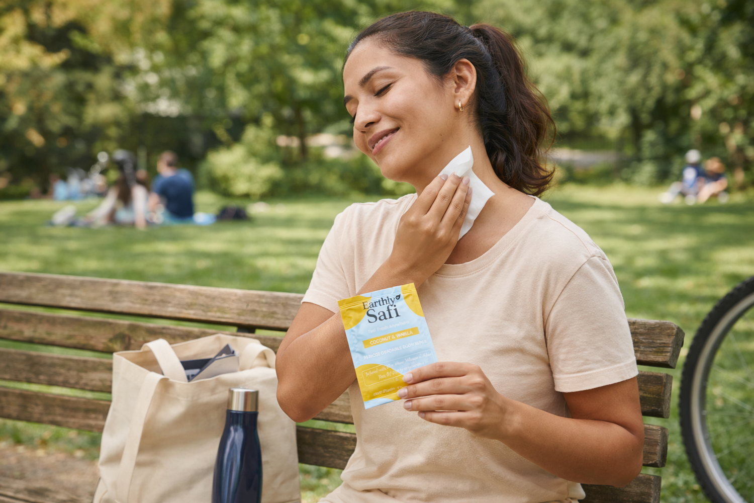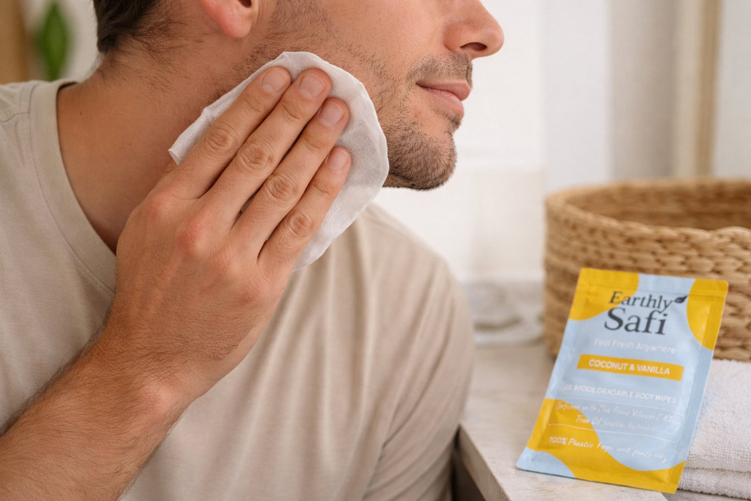 Our wipes are made with clean, plant-based ingredients that hydrate, refresh, and protect even sensitive skin. They’re 100% biodegradable from the wipe itself to the sachet to the kraft box. No parabens. No sulfates. No aluminium. No plastic. Just skin-safe, planet-safe care designed for real life.