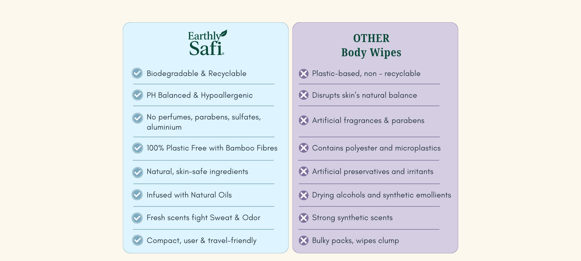 Hypoallergenic and alcohol-free, EarthlySafi body wipes are suitable for sensitive skin and safe for use on delicate areas. Ideal for travel, gym sessions, festivals, long workdays, or refreshing at home between showers, they offer convenient, skin-first care wherever life takes you.